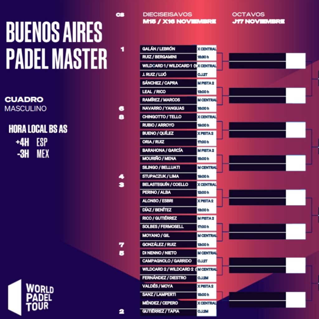 Aunque queda algo menos de tres semanas para que arranque el torneo, World Padel Tour ya ha anunciado el cuadro final del Buenos Aires Padel Master. En él estarán las 4 parejas que se clasificaron de la previa hace escasos días.