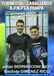 El campeonato quedó en manos de la dupla integrada por Julián Bernasconi Ricci y Bautista Gimenez Ricci quienes en la final se impusieron a Mauricio Gonzalez y Agustín Mapelli.